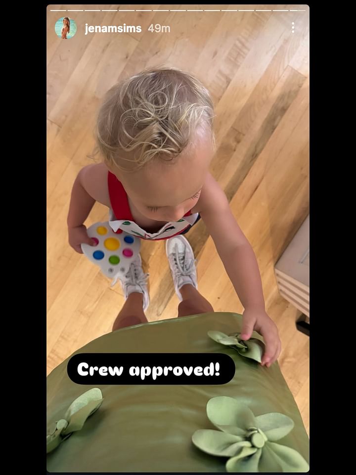 Her ensemble also included a rainbow-studded choker, priced at around \$98. Fans were charmed by Crew’s adorable approval, as captured in a sweet Instagram story moment with his mom.