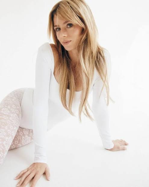 Dressed in a sleek white fitted top paired with patterned leggings, Giorgi embraces a minimalist yet chic look. The simplicity of her outfit allows her natural beauty and confidence to take center stage, offering a perfect example of how understated style can still make a bold statement.