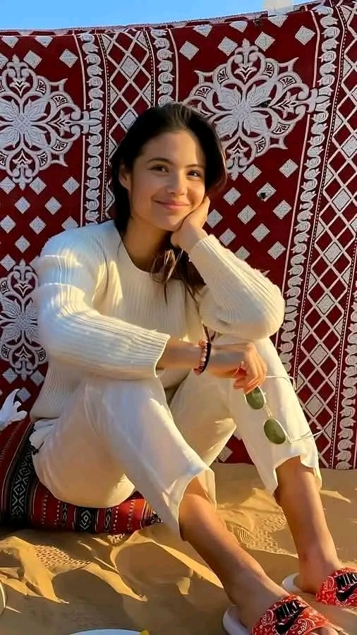 British tennis star Emma Raducanu radiated charm and elegance as she enjoyed a relaxed desert moment, dressed in a cozy cream outfit. Her effortless style and peaceful aura reflect a refreshing break from the intense world of professional tennis.
