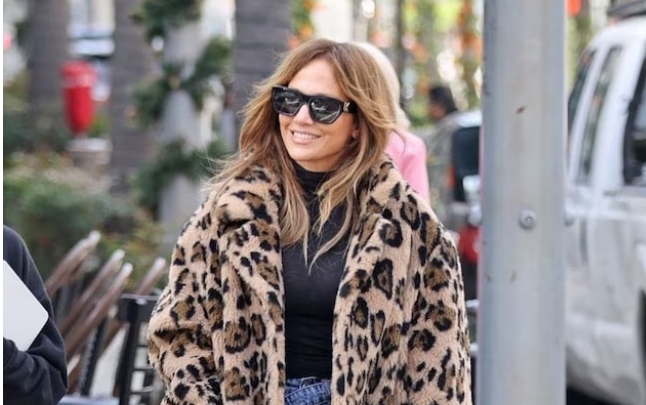 Set against a background of greenery and tall buildings, the contrast highlights her natural beauty and poise.
