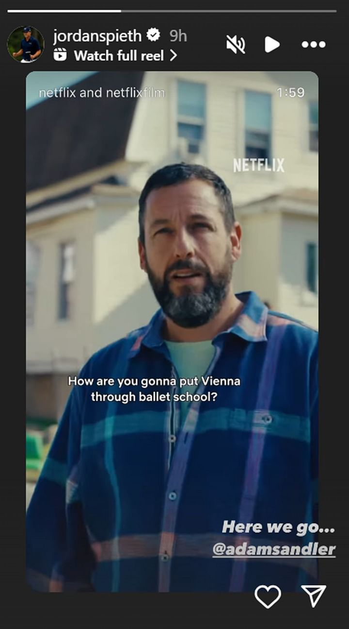 Jordan Spieth showed his excitement for Happy Gilmore 2 with a simple three-word post: “here we go…” The golf star shared the trailer via Instagram, tagging Adam Sandler and Netflix in his enthusiastic promotion.