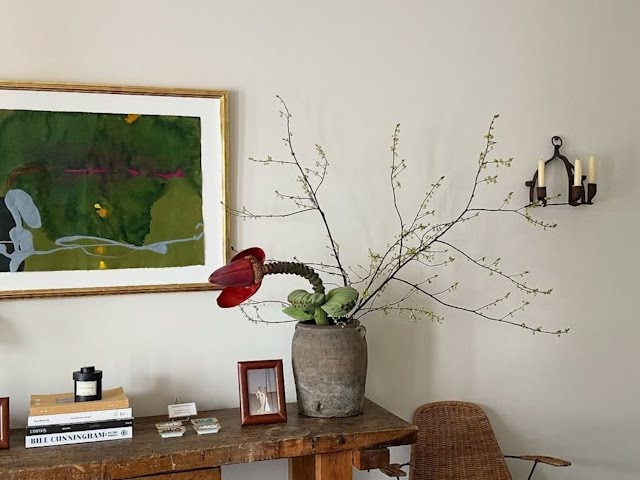 The supermodel’s home, purchased in 2017, features a Mediterranean-inspired aesthetic with warm tones and organic textures. In the shared image, a sleek wooden side table displayed books, vintage ornaments, and a stone vase with red flowers, while an abstract painting and hanging candles adorned the walls.