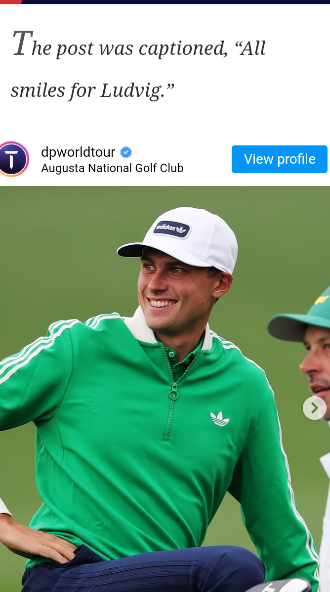 During his Monday practice round, Aberg caught the eye with his stylish outfit. Wearing a green adidas Originals sweatshirt, white cap, and blue trousers, he drew praise not only from fans but also from his sponsor, Adidas.