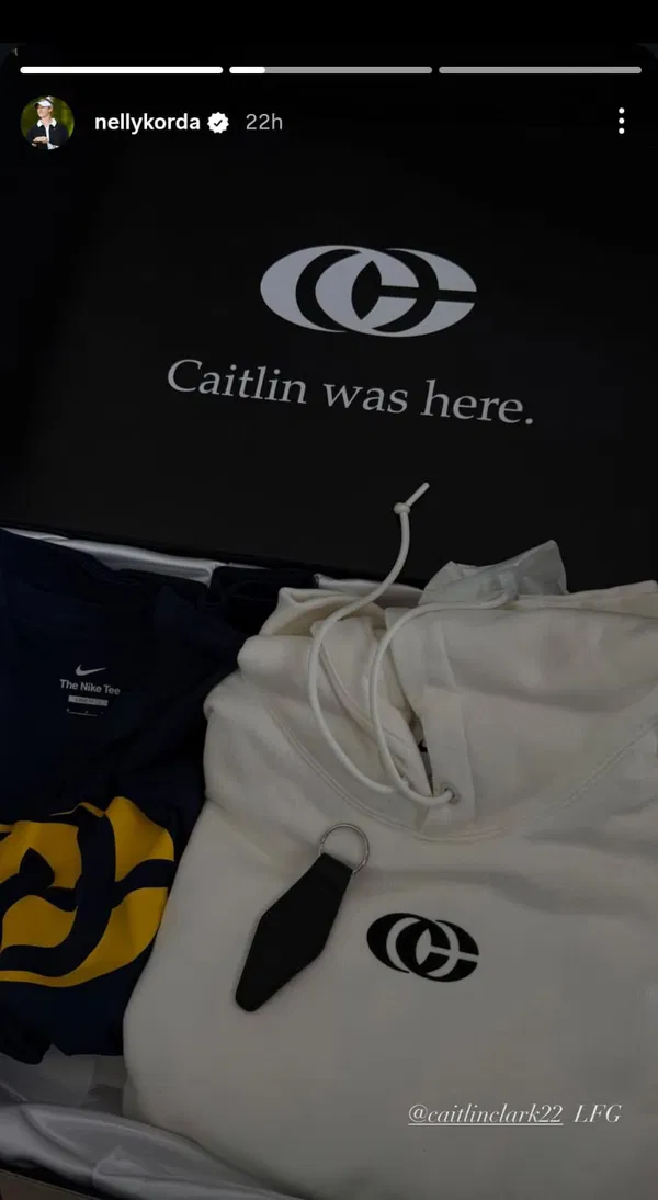 A sleek Nike box revealed Caitlin Clark’s newest branding: a white hoodie, black tee, a keychain, and front and center—her bold “CC” logo stamped with the phrase “Caitlin was here.” While to many it was just another product drop, to Nelly Korda it meant more. On Instagram, the world-class golfer didn’t need long words—just tagged Clark and added a charged “@caitlinclark22 LFG.”