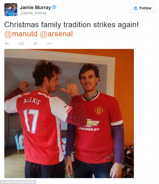 Murray also posed in an Arsenal shirt featuring Alexis Sanchez’s name on the back, while his brother Jamie sported a Manchester United jersey — adding a touch of football rivalry to the family celebrations.