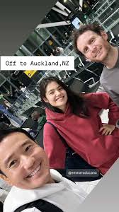 Casually dressed in a red hoodie, Emma posed for a cheerful selfie at the airport with her travel companions. Their excitement was clear as they prepared for the long journey ahead.