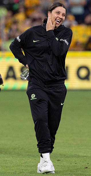 SYDNEY, AUSTRALIA – APRIL 4: Sam Kerr of Australia reacts after the International Friendly between Australia Matildas and Korea Republic at Allianz Stadium on April 4, 2025 in Sydney, Australia. (Photo by Steve Christo – Corbis/Corbis via Getty Images)