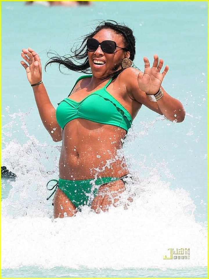 Serena Williams was all smiles as she soaked up the sun and surf in a stunning green bikini. The tennis icon looked carefree and radiant, embracing the ocean waves with joy and confidence during her beach getaway.
