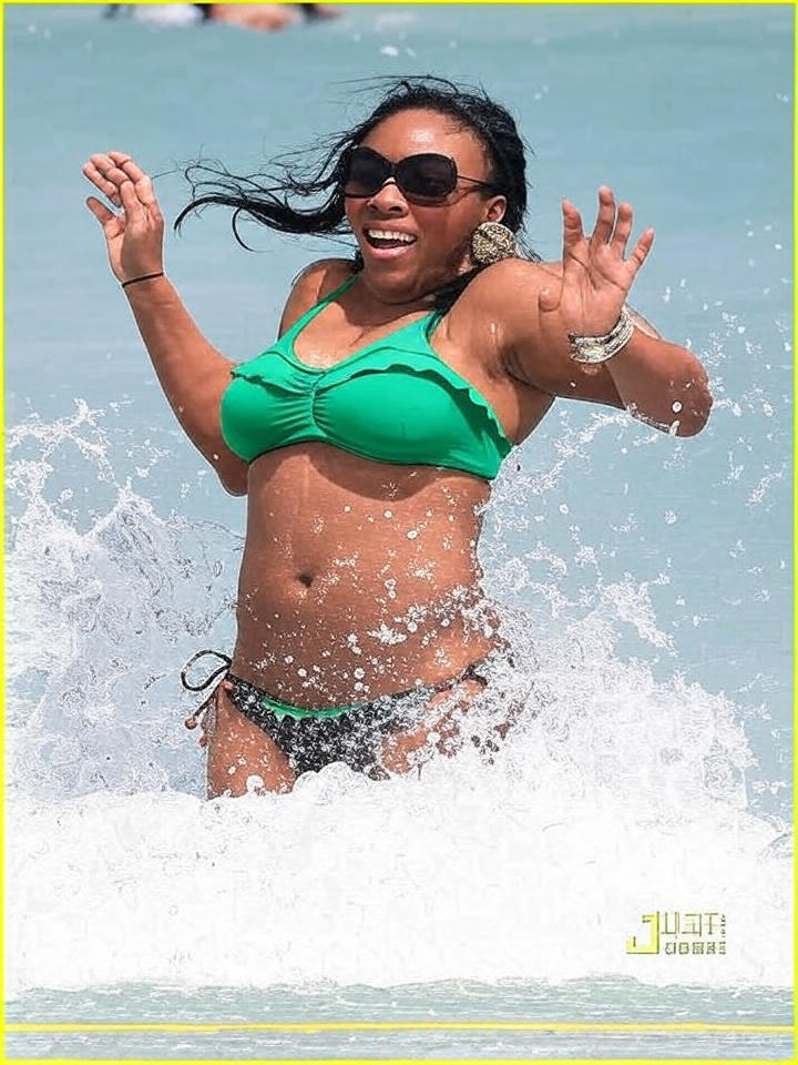 Wearing oversized black sunglasses and bold hoop earrings, Serena exuded effortless style. Her vibrant swimsuit accentuated her athletic figure, a testament to years of dedication to fitness and sport.